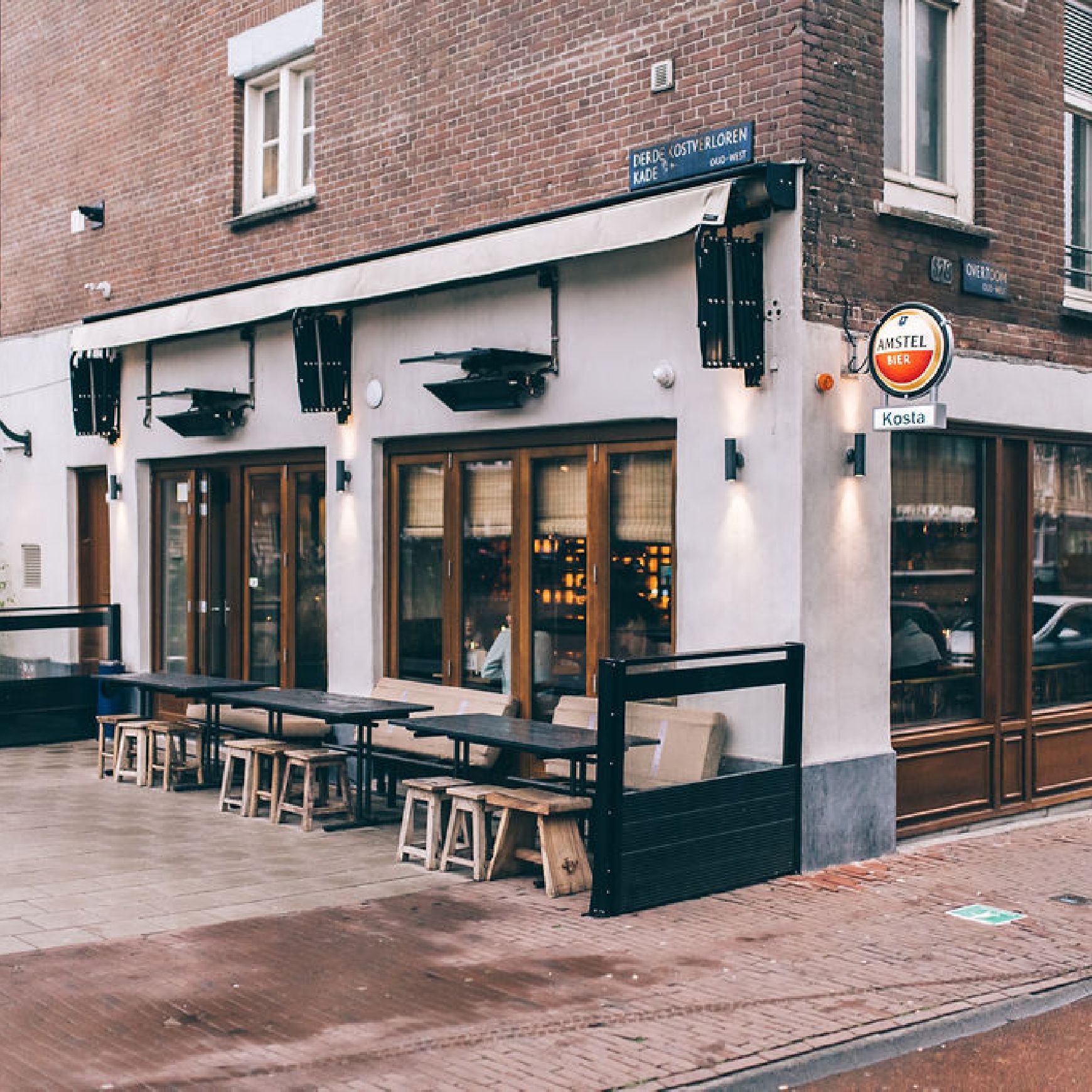 Commissioned by interior designer Thijs Murré and in collaboration with Bar Kosta, we have been able to provide the interior of this trendy bar with decorative colored finishes on walls and ceilings, the exterior is also provided with a responsible natural plaster.